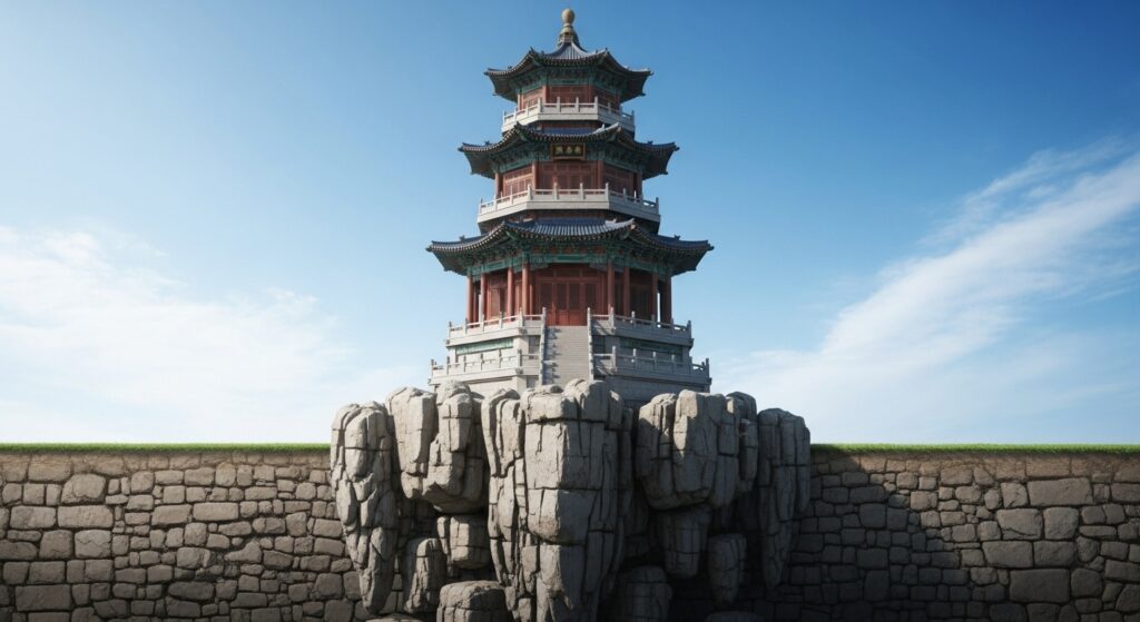 「楼閣」とは、二階建て以上の高く立派な建物 を指す漢語です。中国の宮殿や庭園に見られる観賞用の高楼をイメージすると近いでしょう。