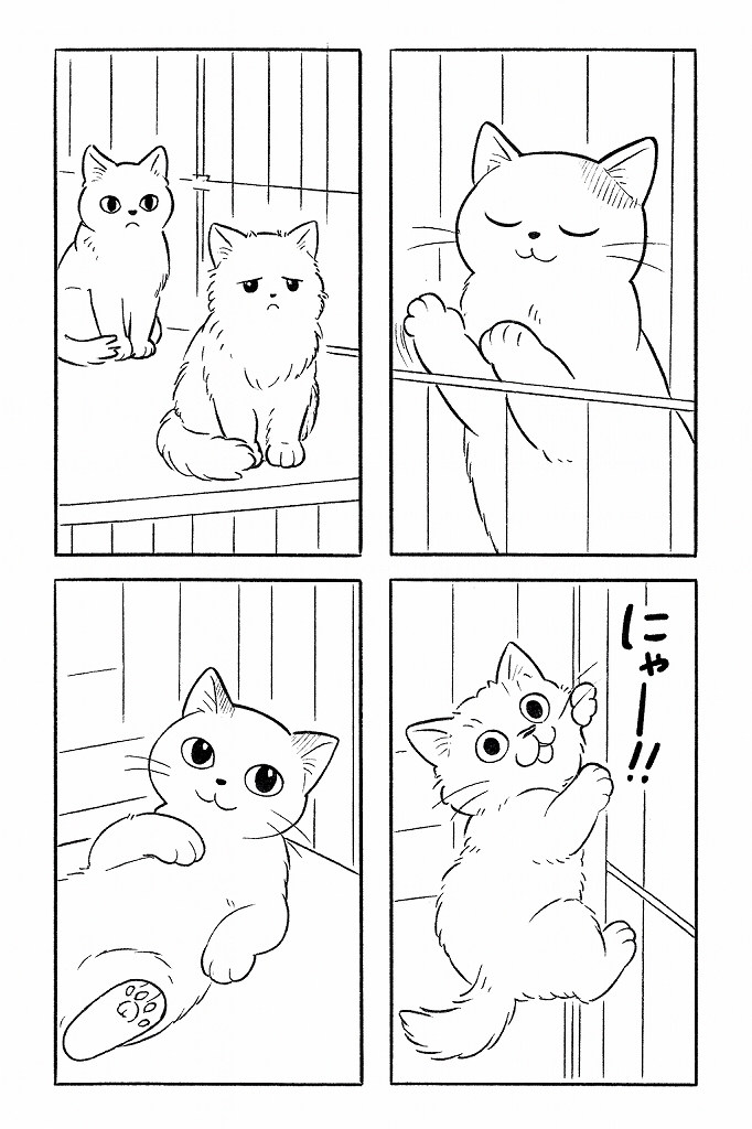 3コマ目不採用 タイトル「籠の中の白猫」。特徴の耳の模様が逆になってます。