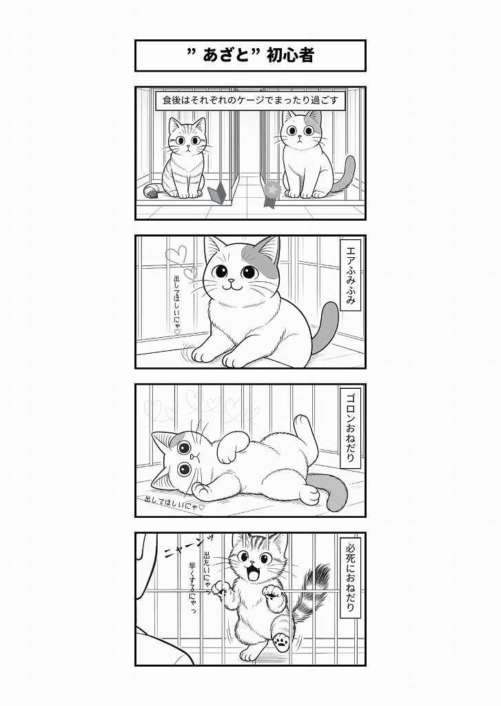 4コマ漫画で2匹を同時に描くのは今回が初めてでしたが、