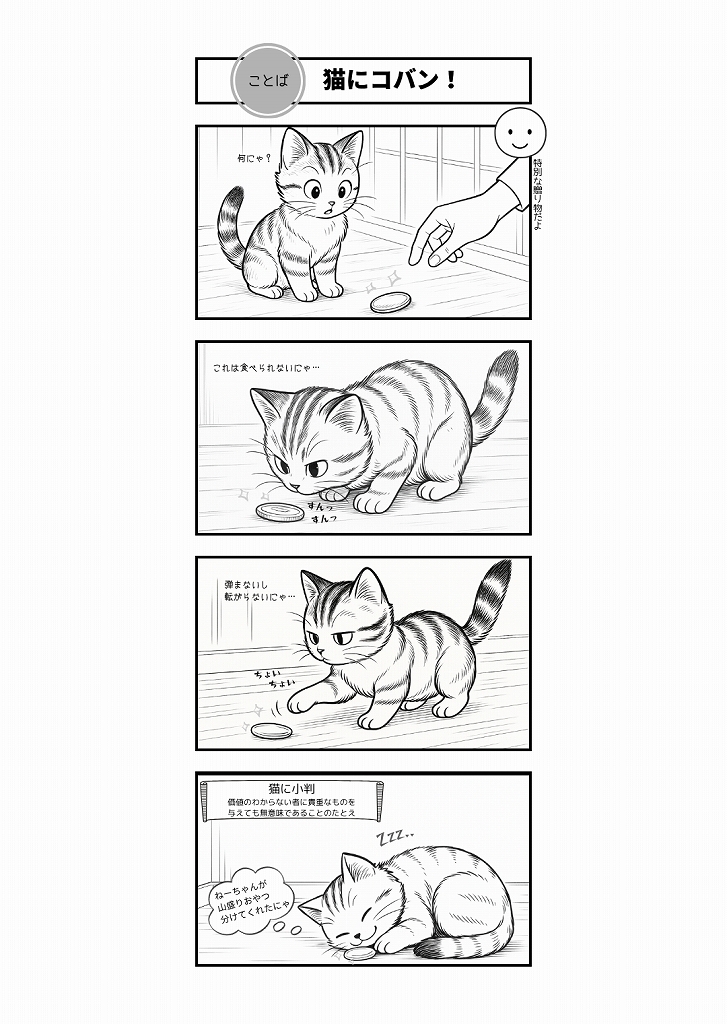 AI4コマ漫画|『猫にコバン!』(ことわざ × はーちゃん)